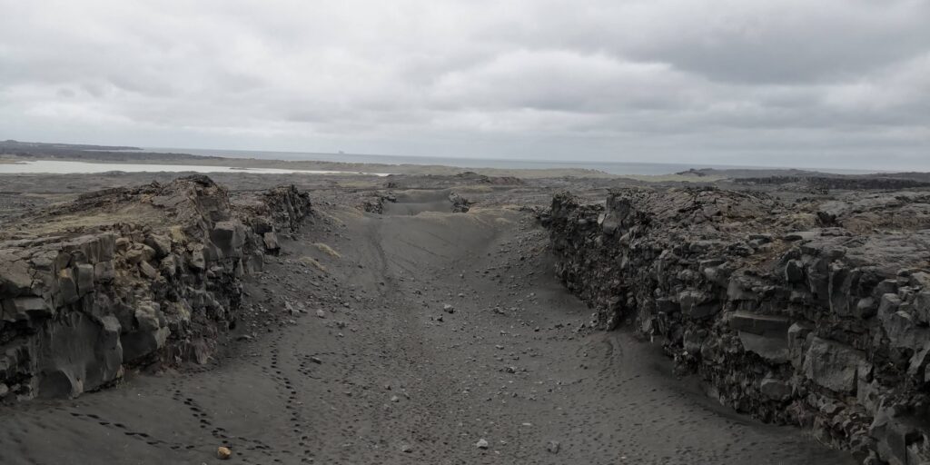 Geologene vet imidlertid at oppsprekkingen og spredningen av platene ved Reykjaneshalvøya på Island foregår over et mye større område, og at riften under broen dermed kun utgjør en liten del av spredningssonen.
