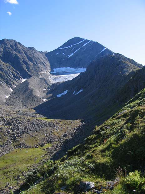 Istindene ble dannet under den kaledonske fjellkjedefoldingen for ca 400 millioner år siden. Et typisk eksemplar. Selve toppen er av dioritt (hvit granitt). Lengre nede i fjellet er det glimmerskifer som råder.