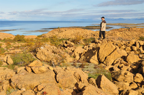 Leka er noe for seg selv. Det første som slår turistene er de helt spesielle fargene. I stedet for nyanser i grått, slik vi kjenner landskapet fra fastlandet, går det i gult, brunt og rødt, eller la oss kalle det rustfarger. For overflaten på steinen er dekket av rust. Det skyldes forvitring gjennom tusener av år av de spesielle (svarte!), steinene på denne øya lengst nord i Trøndelag. Geologene drar imidlertid hit ut av helt andre grunner.