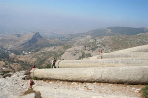 Men hvor kommer den fra da? Litt nærmere undersøkelser avslørte at den kommer fra en forekomst ved Karystos på øya Evia like nord for Athen. Marmoren var en av de mest populære natursteiner i romertiden, og ble brukt til søyler, plater og sarkofager. Romerne kalte den “Marmor Karystium”. Den særegne marmoren ligger i et belte med høytrykks-metamorfe bergarter i denne delen av Hellas, i godt selskap med blåskifer. På vandring i disse fjellområdene ser vi selv i dag et storslagent steinbruddlandskap etter romerne, strødd med halvferdige, gigantiske søyler. Steinen er brukt over hele Romerriket, inklusiv Kartago. I senere tid har det også vært litt produksjon til eksklusive formål, som for eksempel Westminister Cathedral i London.